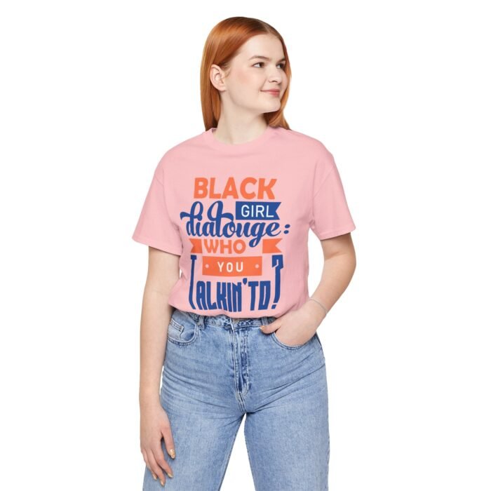 Make a bold statement with the Black Girl Dialogue T-Shirt for Women, a casual graphic tee that celebrates confidence, authenticity, and self-expression. Designed for women and girls who embrace their individuality, this shirt combines style and comfort, making it perfect for both casual outings and relaxed days at home. Featuring the vibrant “Black Girl Dialogue: Who You Talkin’ To” print, this t-shirt isn’t just an outfit—it’s a conversation starter.