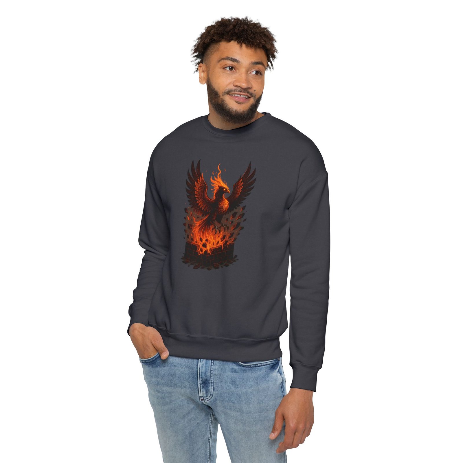 Phoenix Fire Unisex Drop Shoulder Sweatshirt – Fall & Winter Fashion Streetwear