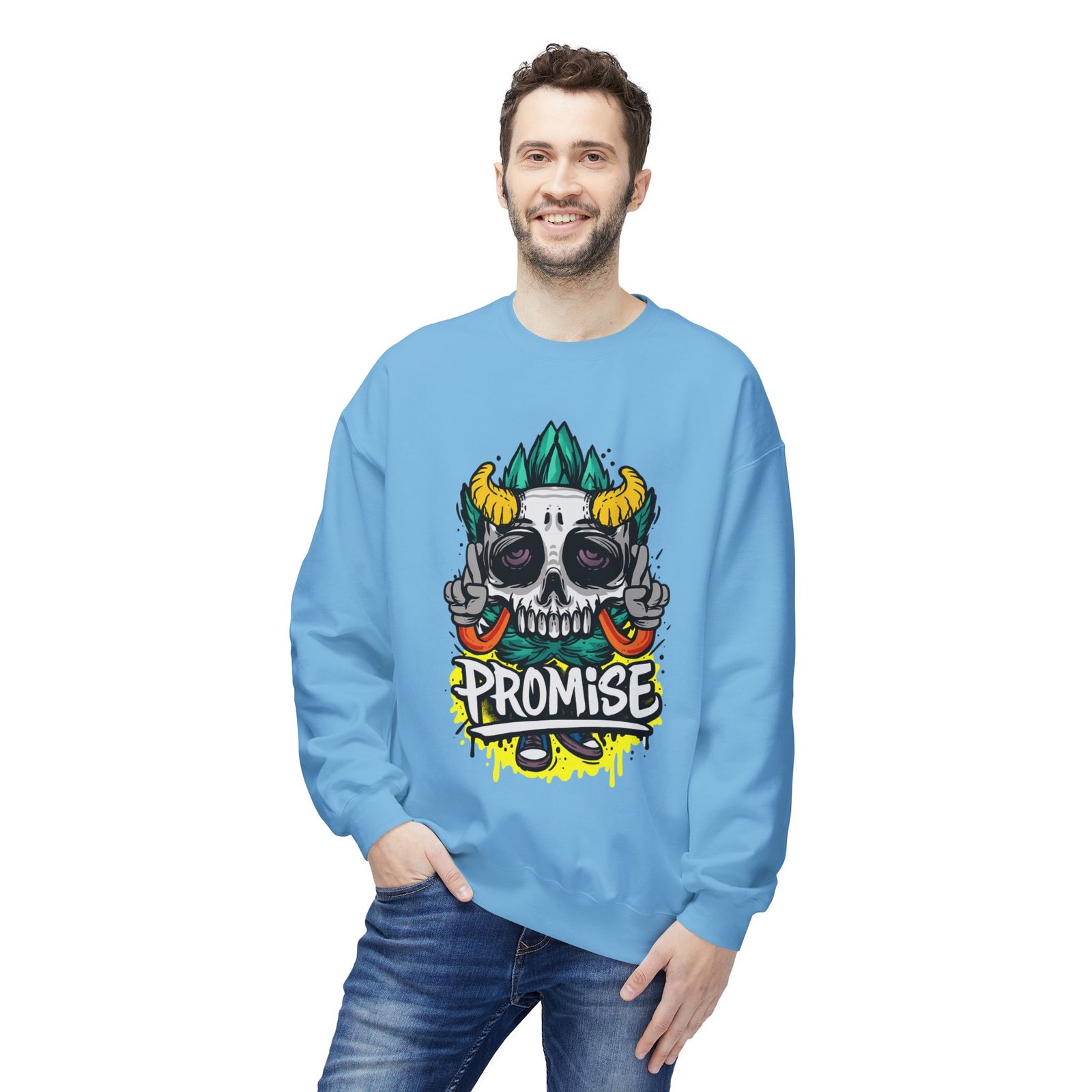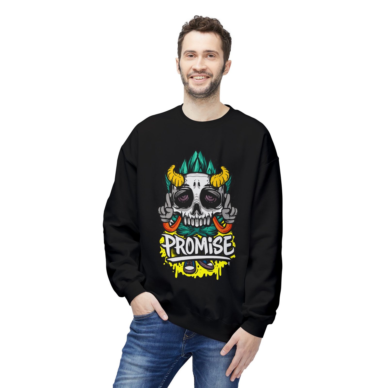 Promise Skull Crewneck Sweatshirt | Unisex Fleece Top, Casual Streetwear